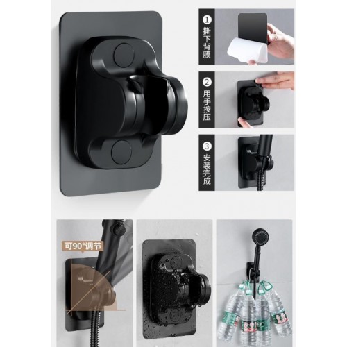 Kademeli Yapışkanlı Duş Başlığı Tutucu Ayarlı SİYAH Yeni